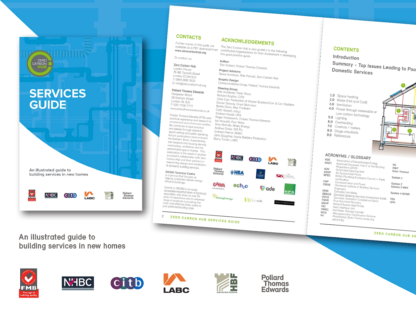The Zero Carbon Hub Services Guide, which was written and designed by PTE, was launched at Ecobuild on Tuesday 8th March. Rob Pannell, Managing Director of the Zero Carbon Hub, introduced the new guide as a result of their performance gap and ventilation research showing poor knowledge and standards of building services in homes. He offered his thanks to PTE and Head of sustainability Tom Dollard, who was author of the guide. Tom then explained the contents of the guide, concluding that it “highlighted key issues found with the performance of services, and offered solutions for project teams. I hope the guide will contribute to reducing the performance gap and improve the design and delivery of domestic building services.” The book was the result of a long standing partnership between Pollard Thomas Edwards and the Zero Carbon Hub, and presents research and findings from the ventilation project (2013-2016), and the performance gap study of (2011-2014), assessing the housebuilding process on 27 live construction sites with 300 dwellings. These combined studies highlight significant failings of the housebuilding industry to deliver to minimum standards of part L (energy) and F (ventilation). The Services Guide aims to provide clear guidance for design and project teams to deliver to building regulations and improve performance of new homes. The Services Guide is one of the Zero Carbon Hub’s low energy guides, including SAP untangled, Thermal Bridging guide and the Builders’ Book. The guides will be presented at the Green Register's training sessions through April and May. All the guides are available to download for free on the Zero Carbon Hub Website: http://www.zerocarbonhub.org/full-lib