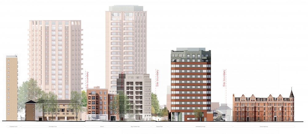 The project is a partnership between London Square Developments and the London Borough of Lambeth, following an extensive co-design and consultation process with local residents, traders and stakeholders. Its programme integrates phased delivery, continued market operations and the complex refurbishment of the George Finch-designed International House, requiring careful coordination of construction, servicing and long-term estate management.