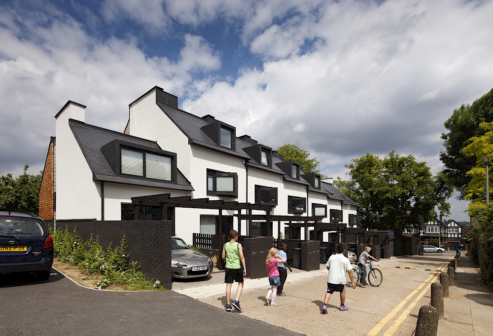 Pollard Thomas Edwards’ own development of seven family townhouses for private sale has reinvented the terraced house providing popular four-bedroom homes on a confined and sloping infill site with mature trees.