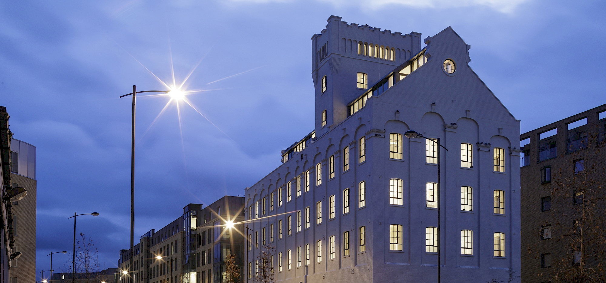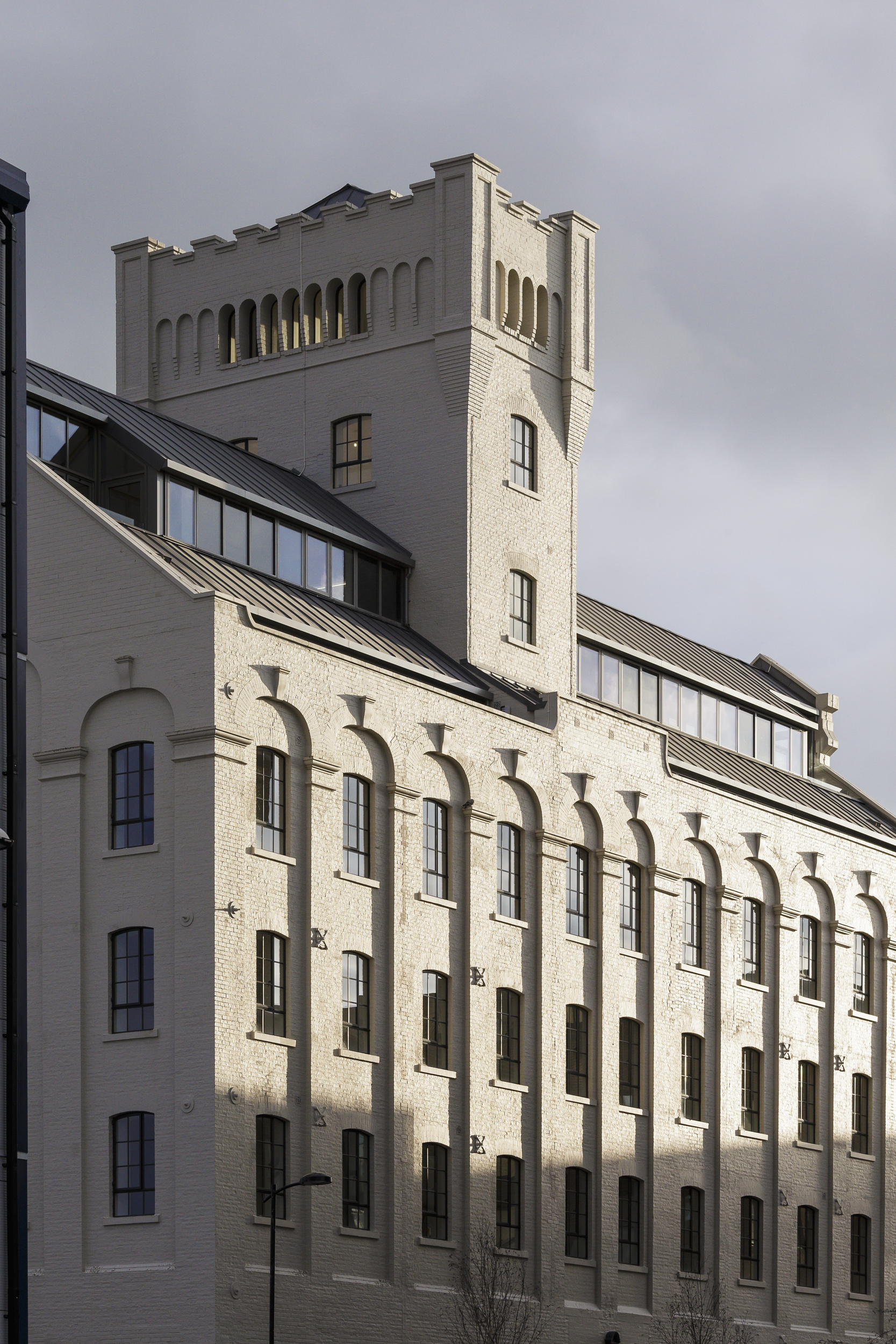 Spillers Mill is a late nineteenth century industrial building which is classified as a Building of Local Interest. Our approach was to remove poor quality additions, reinstate the original parapet line, and maintain the existing window detail: original double-height openings at street level were exploited to provide double-height commercial space.