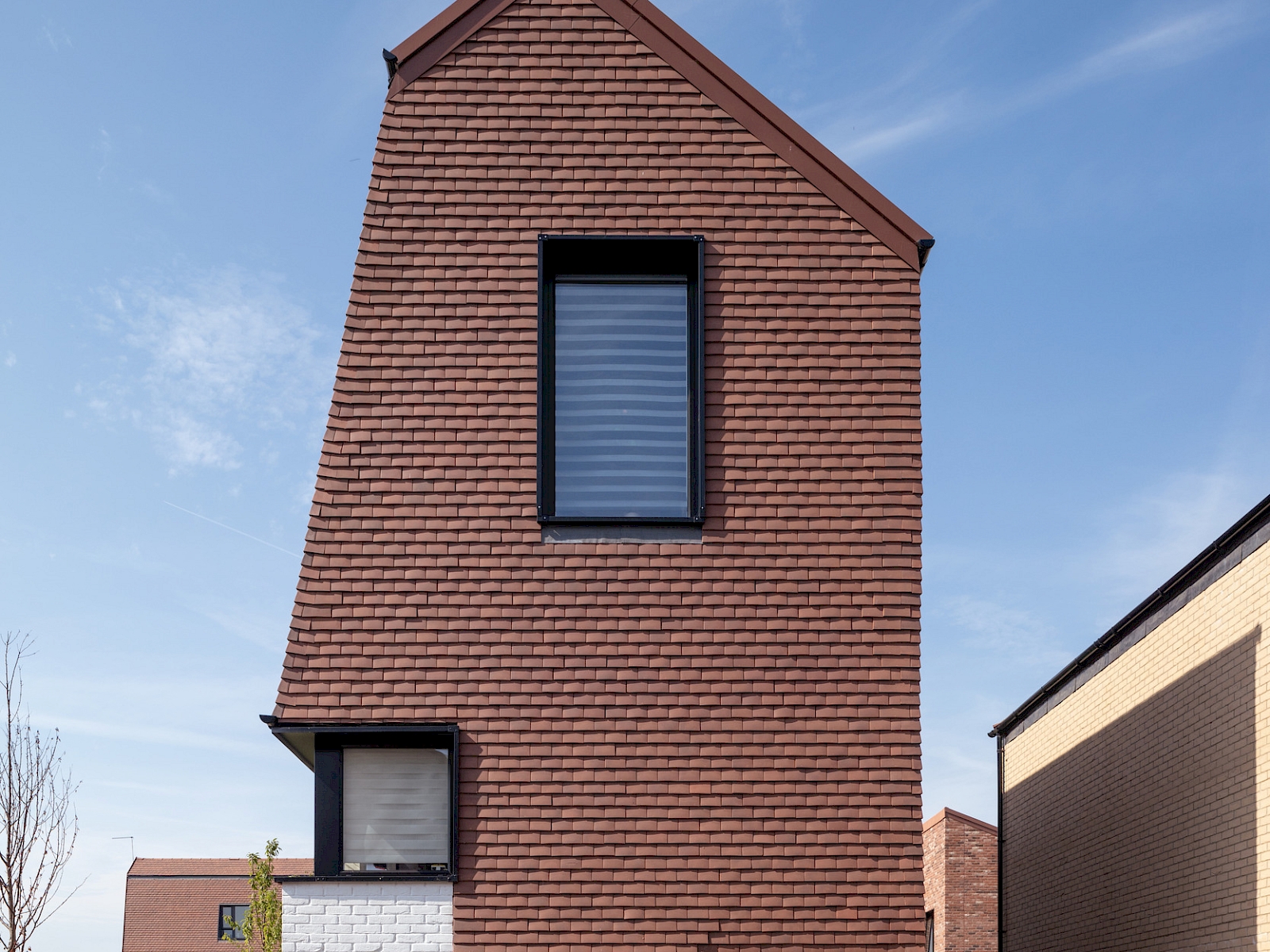 The variety in each home’s design is central to the sense of place we sought to evoke. We saw this as typically Essex – or typically this part of Essex - in that it picks up on the local tradition made famous by Dunton Plotlands, of custom build homes. However, these factory-made dwellings, devised partly by residents using software to adapt readymade templates.