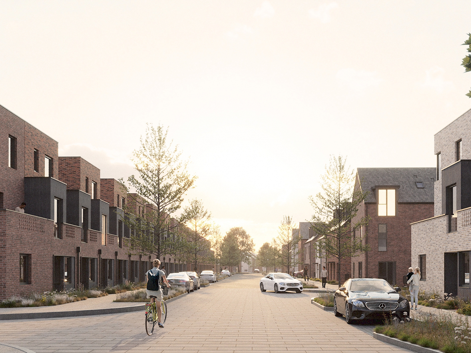 Towards 2050 - zero carbon: An urban layout with a variety of house types that considers mobility, energy usage and land use geared for tackling a zero-carbon world. Homes will be powered by a dedicated ‘smart grid’ - developed by next-gen energy infrastructure specialist SNRG - with electricity supplied and tracked to ensure this first phase of homes will be 100% gas-free.