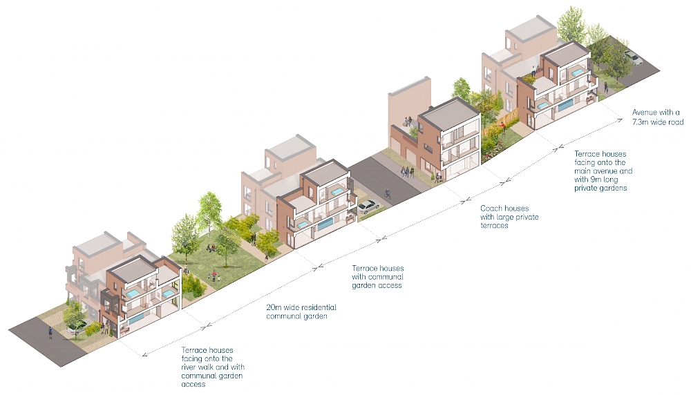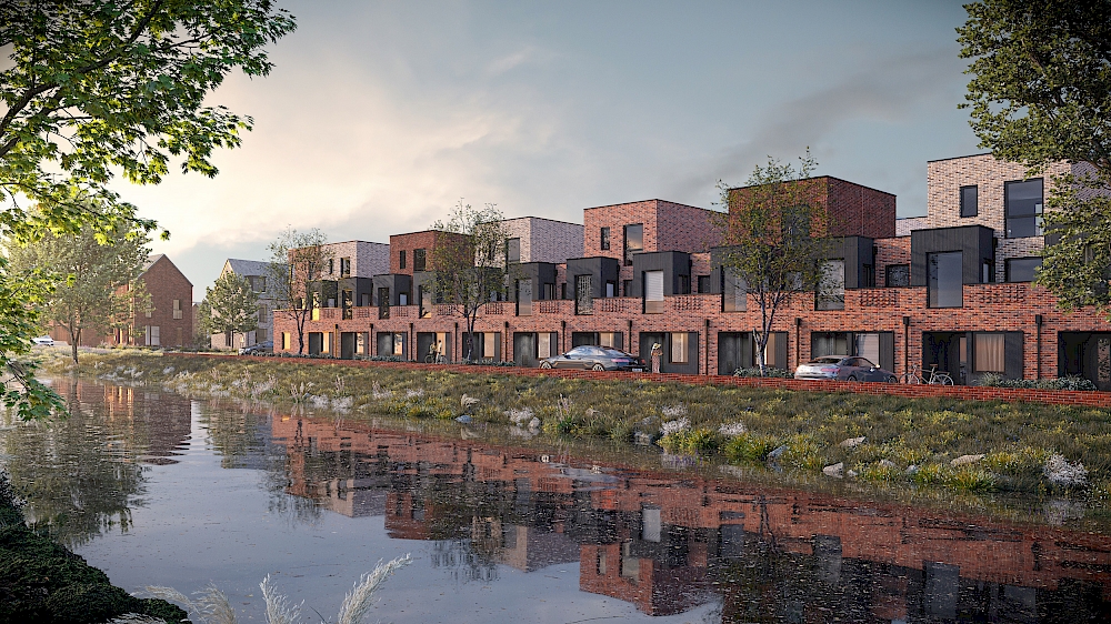 Rooted sustainability in an emerging masterplan: Homes and open spaces embedded within new and enhanced green and blue infrastructure.