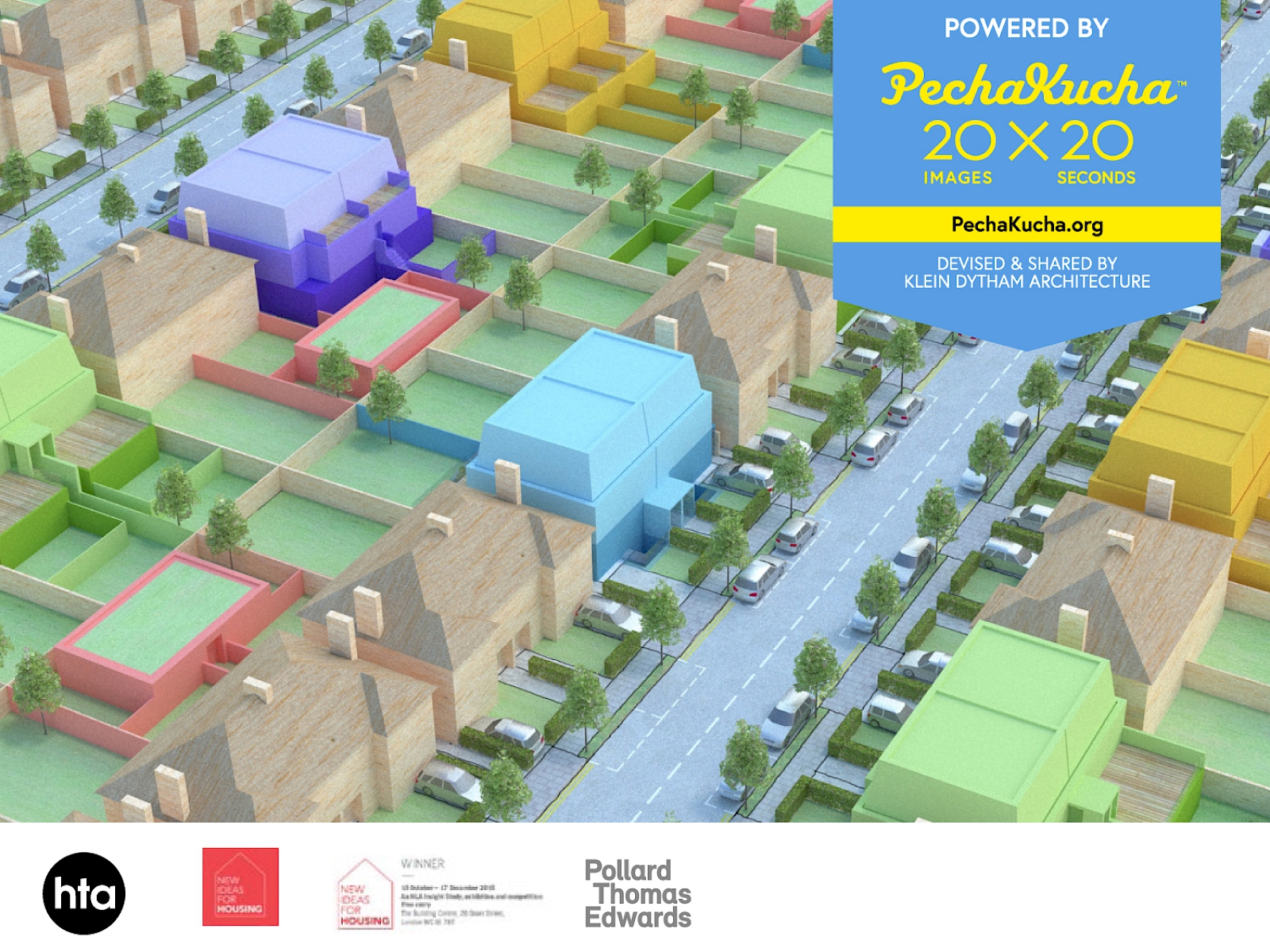 HTA Design LLP and Pollard Thomas Edwards invite you to an evening reception powered by PechaKucha to coincide with the NLA New Ideas for Housing London competition, exhibition and insight study. Supurbia is the title of HTA’s winning entry to the competition. It’s an idea for neighbourhood based framework allowing householders to create new high quality housing and more sustainable neighbourhoods by exploiting the asset value of their increasingly valuable suburban plots. Semi-permissive is Pollard Thomas Edwards’ exhibited idea for similarly allowing householders the freedom to become micro-developers by relaxing permitted development rights in accessible areas so as to stimulate suburban intensification. The evening will be opened by David Lunts (Executive Director, Housing and Land, Greater London Authority) who will explain why this thinking is a relevant contribution to the debate about housing supply in the capital. MONDAY 16th NOVEMBER 6-9pm NLA, The Building Centre, 26 Store Street, London, WC1E 7BT CONFIRMED SPEAKERS Mark Lucas, London Borough of Redbridge Ben Derbyshire, HTA Design LLP Andrew Beharrell, Pollard Thomas Edwards Scott Adams, HTA Design LLP Yolande Barnes, Savills Pauline Roberts, Nathaniel Litchfield & Partners Riette Oosthuizen, HTA Design LLP Marc Vlessing, Pocket Living REGISTRATION IS ESSENTIAL as places are strictly limited. RSVP tim.metcalfe@ptea.co.uk