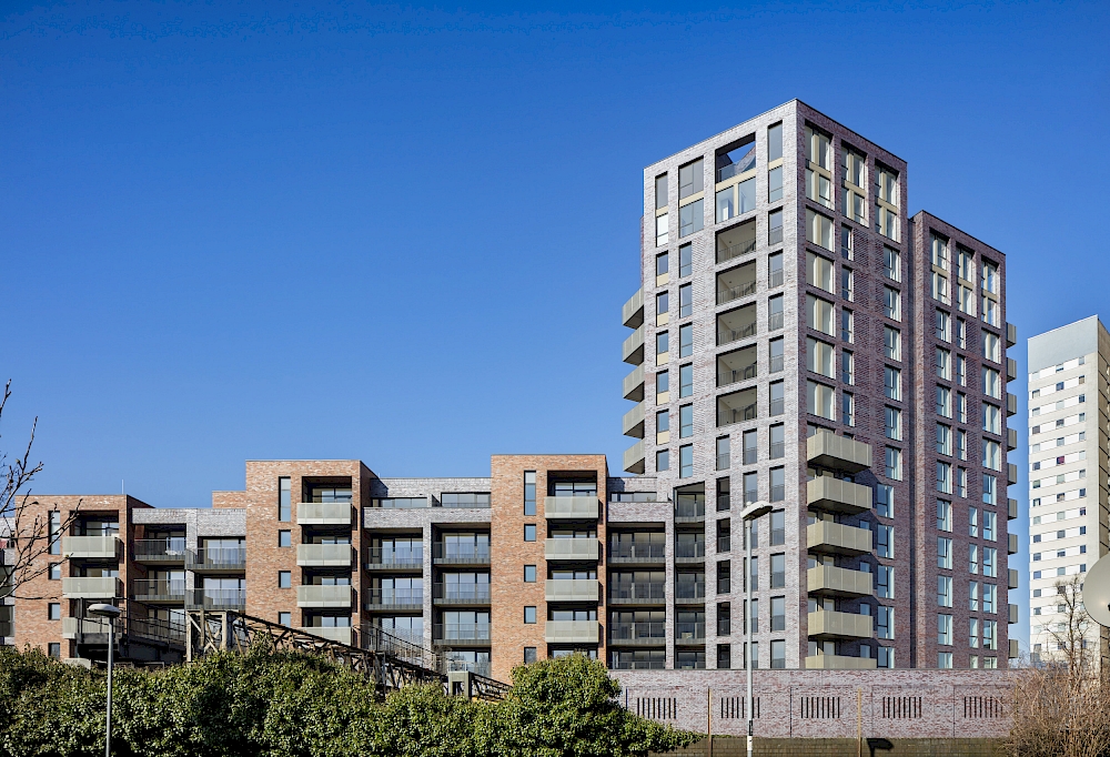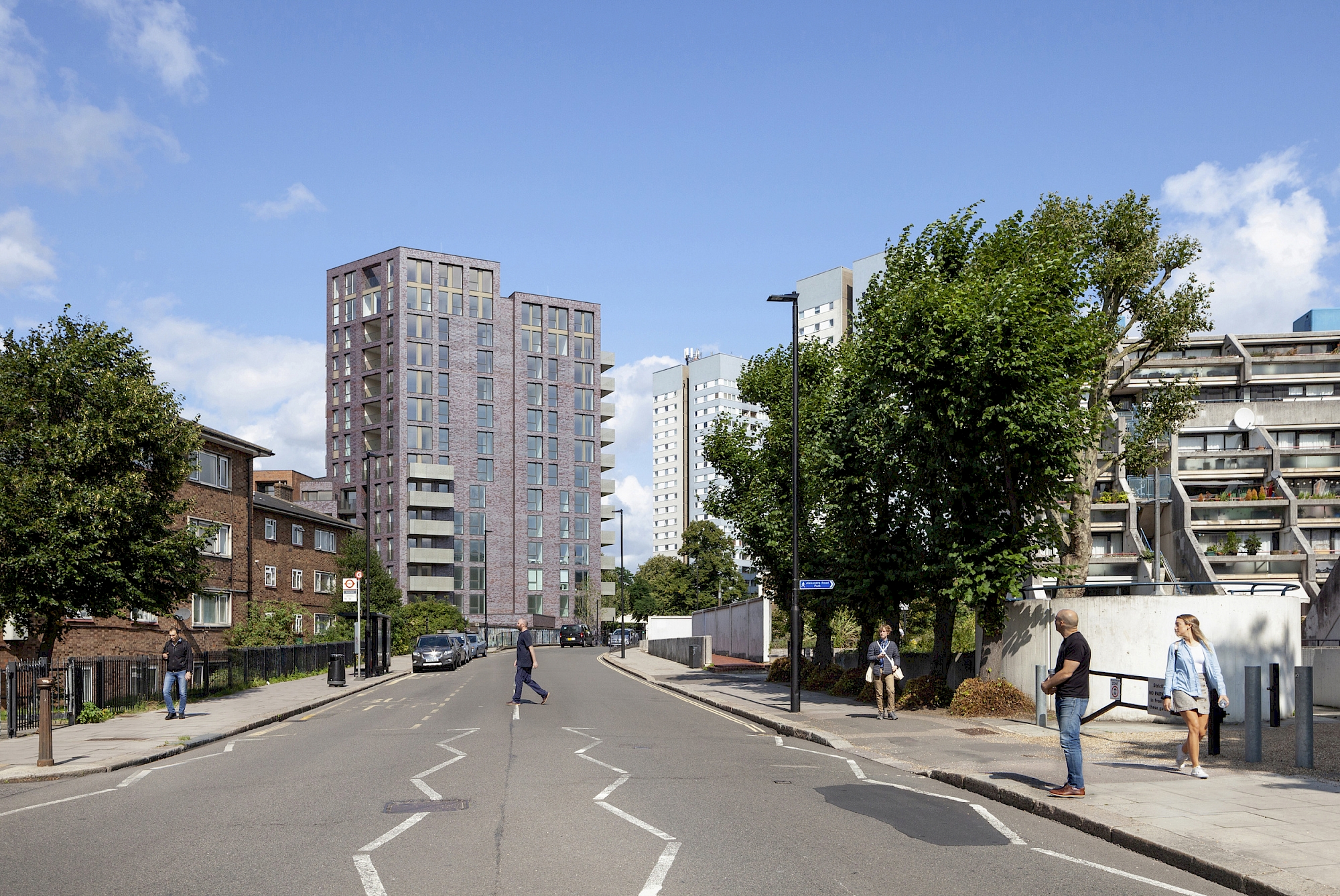 This transformation of a 1970’s estate creates 240 new homes, a health centre and community hub on a sensitive and valuable site next to a conservation area. Integration of a 14-storey tower generates cross-subsidy for replacement affordable homes. PTE provided a full service from concept to completion of Phase 1 in 2019, and is now planning the next phase.