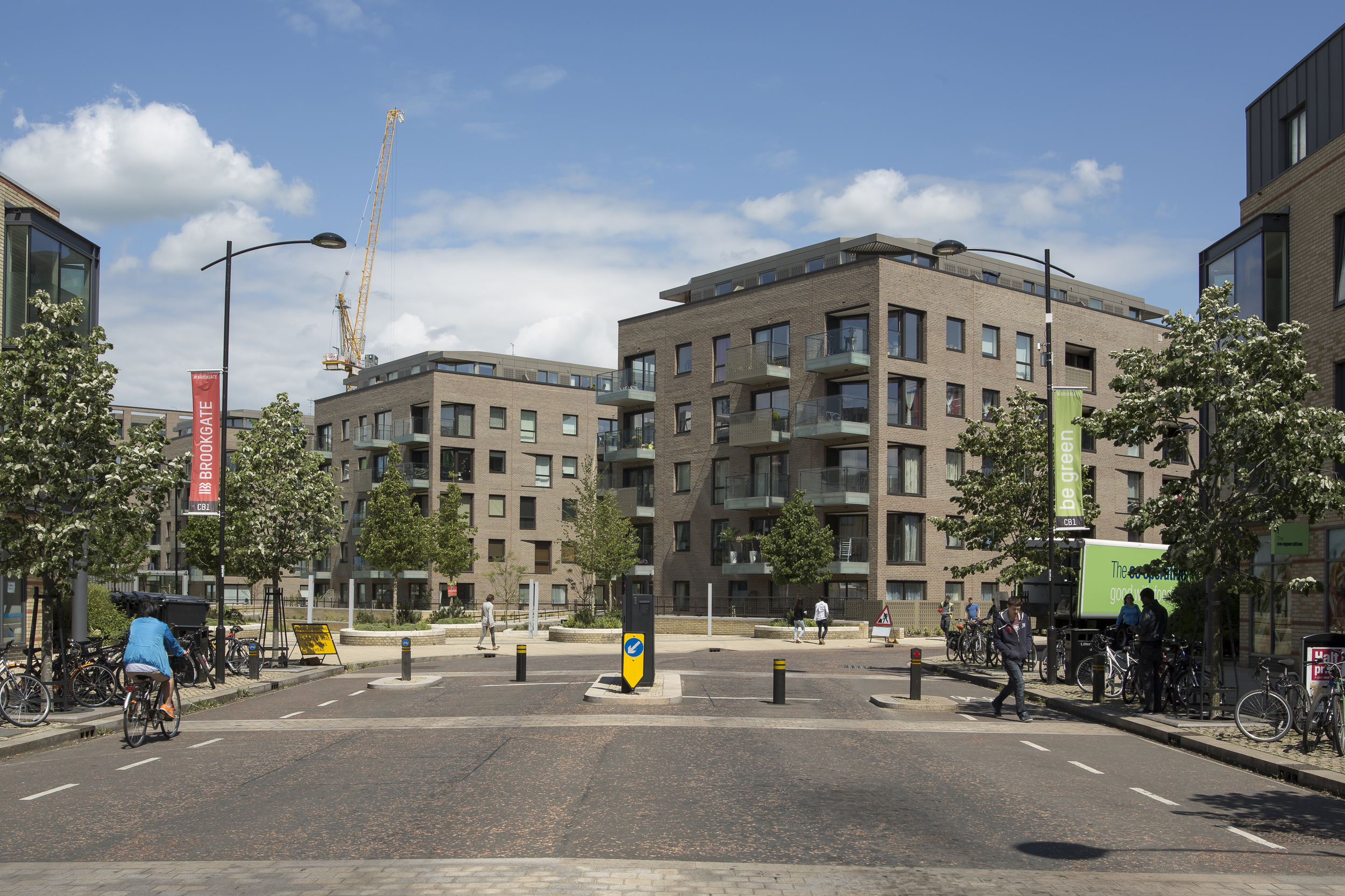 Within the new urban quarter emerging around Cambridge railway station, PTE has delivered a group of four ‘pavilions in the park’ containing 150 apartments, and has restored the historic Foster’s Mill. The detailing is exemplary and features robust patterned brickwork and decorative metal screens to balconies and stores.