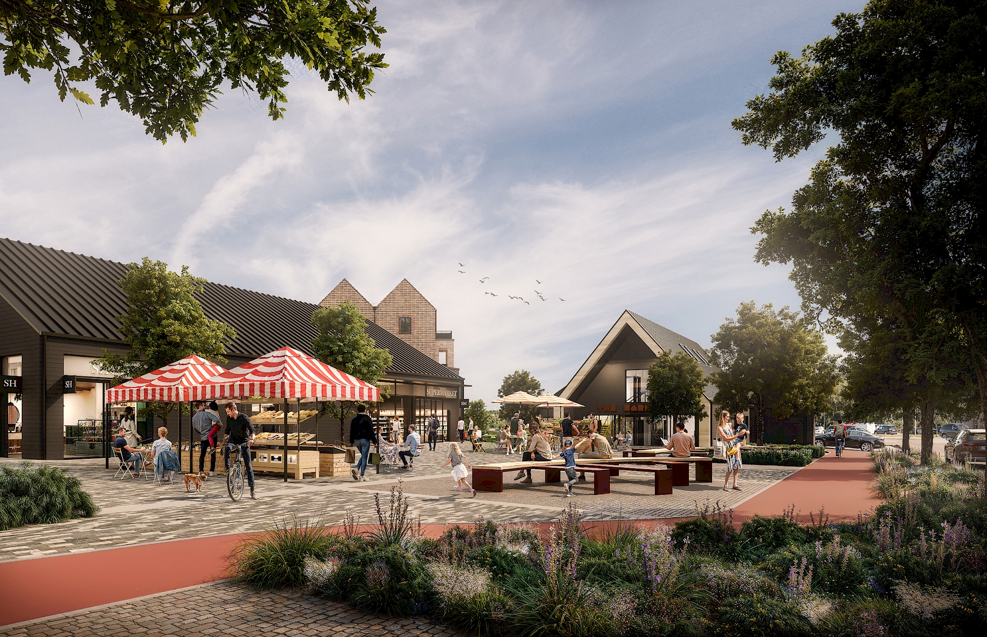 The neighbourhood centre will be framed on three sides by a school, community building, retail space and health centre. Buildings are to be truly tenure blind and characterised by contemporary architectural details, within a palette of traditional building materials.