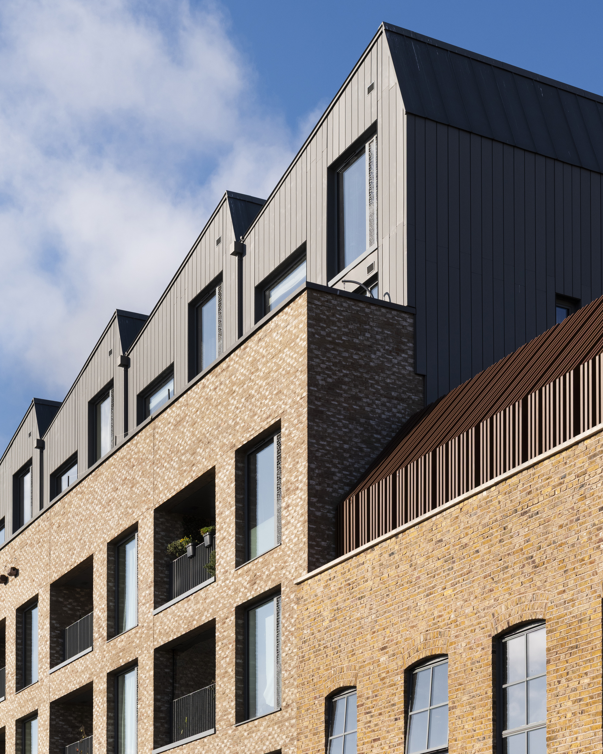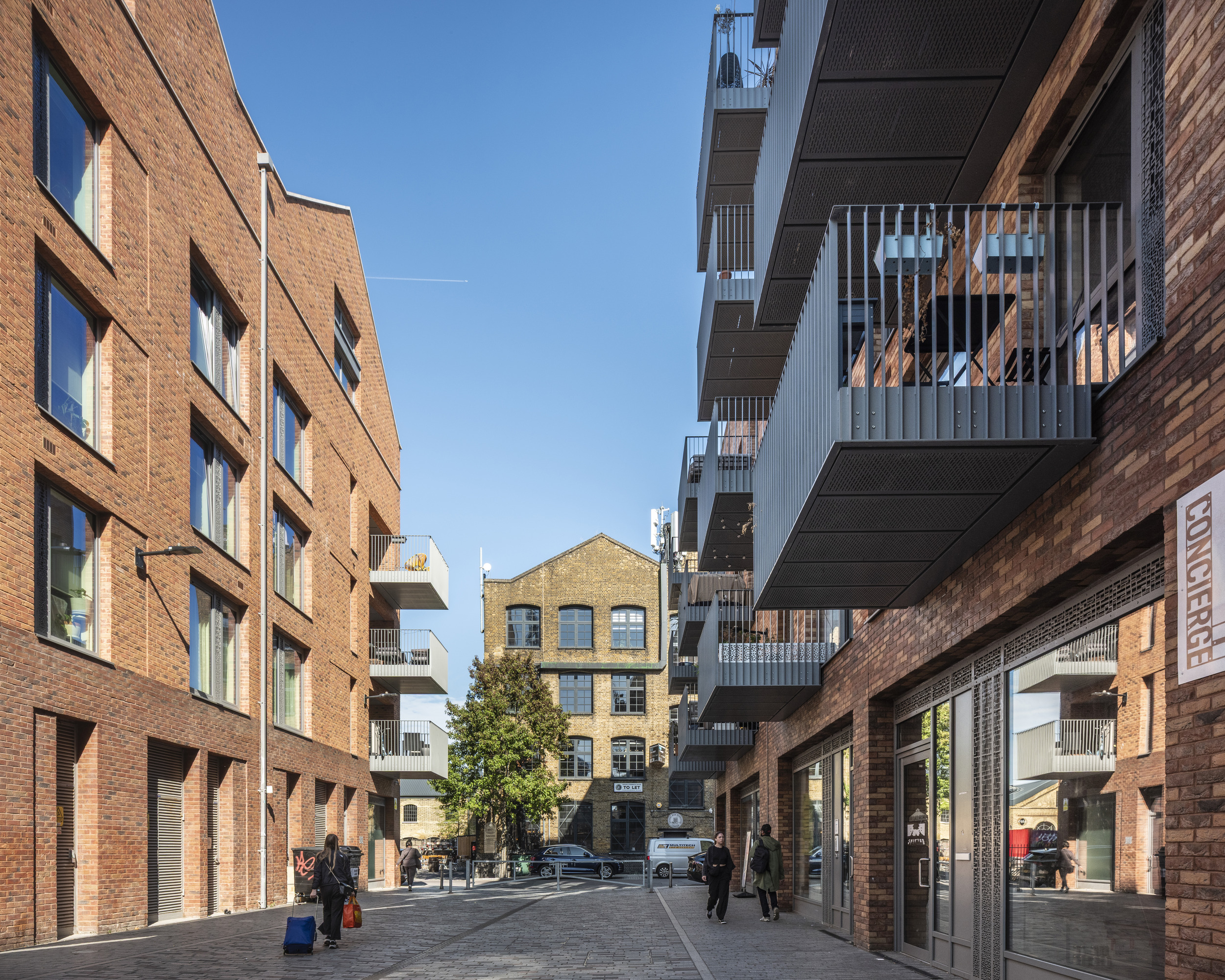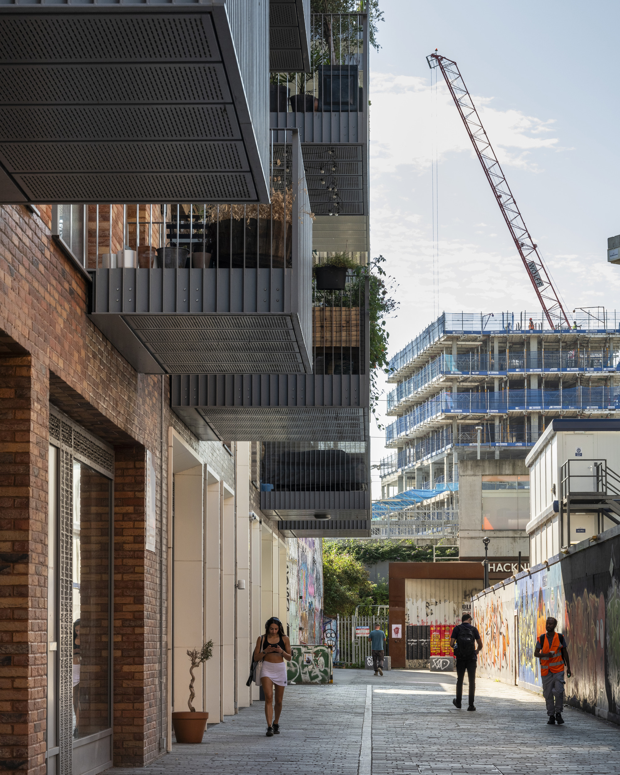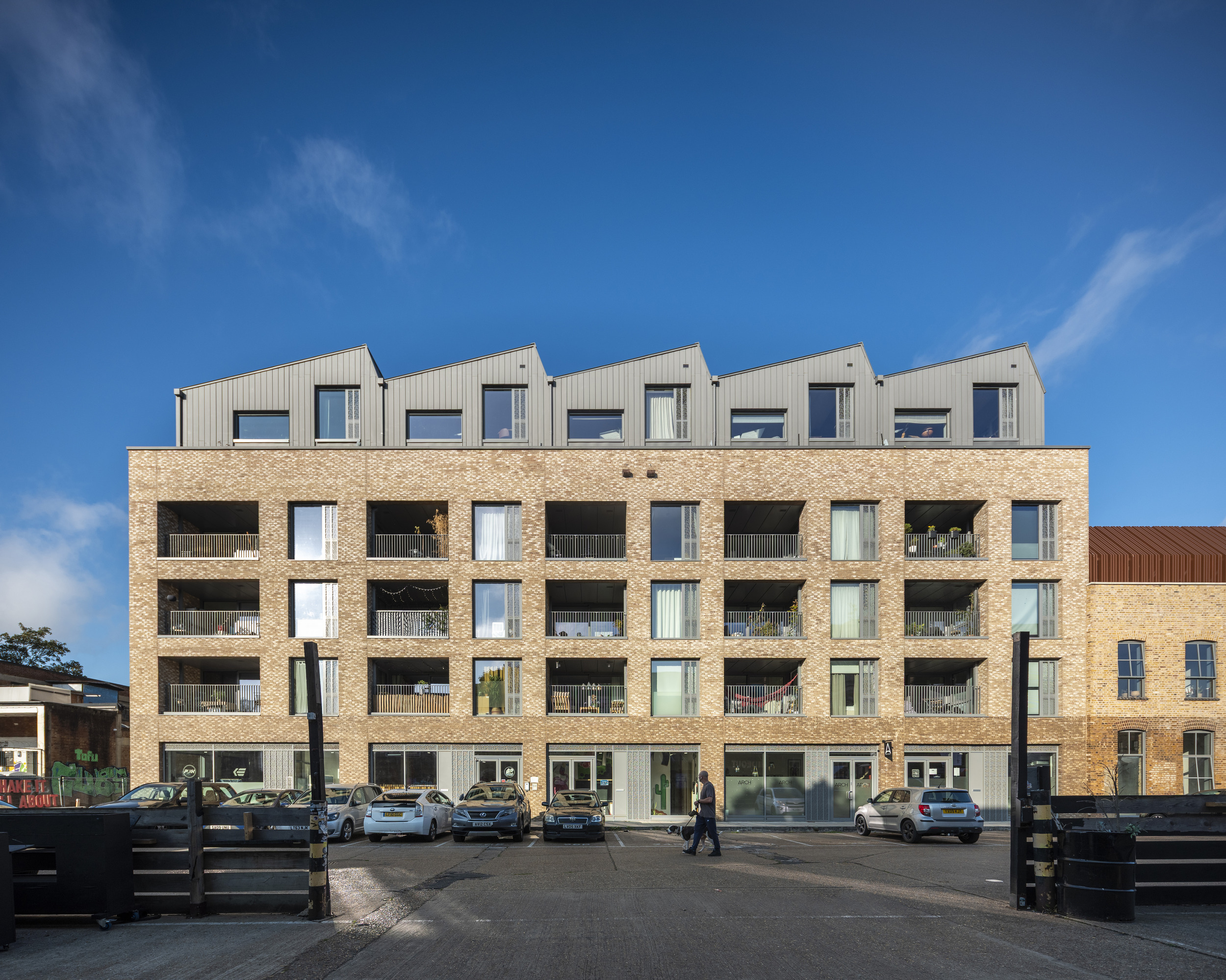 New studios for the creative industries are integrated with 120 loft apartments in a set of five adjoining buildings within a network of yards and lanes. The development delivers a new public route connecting Hackney Wick station with the Queen Elizabeth Park.